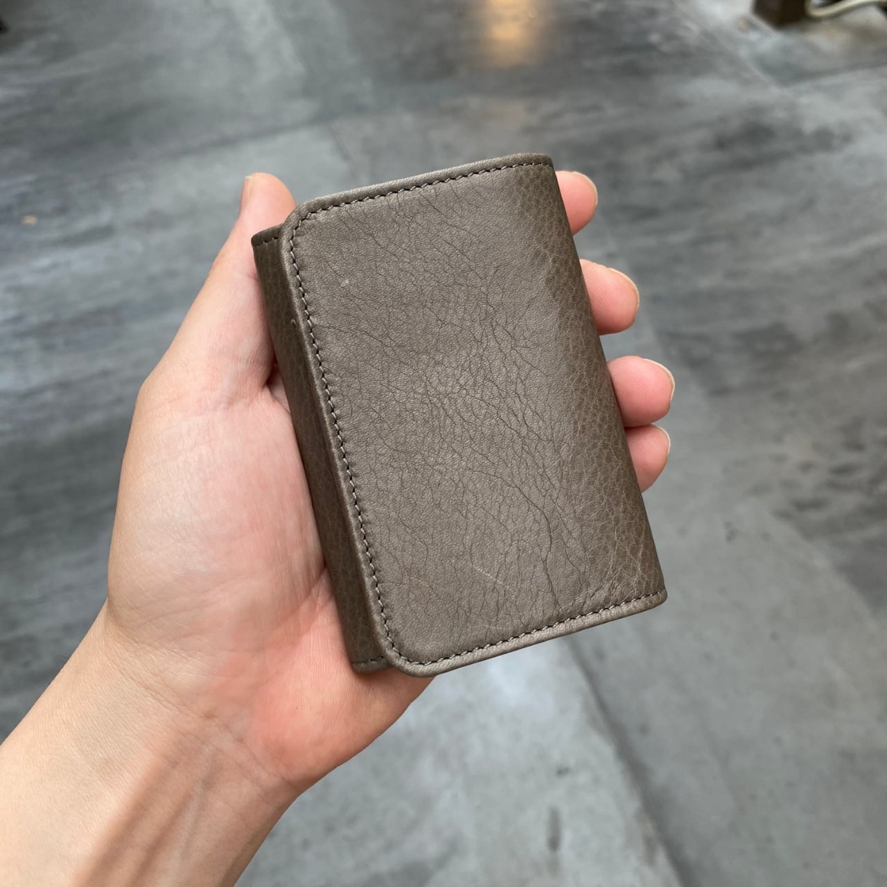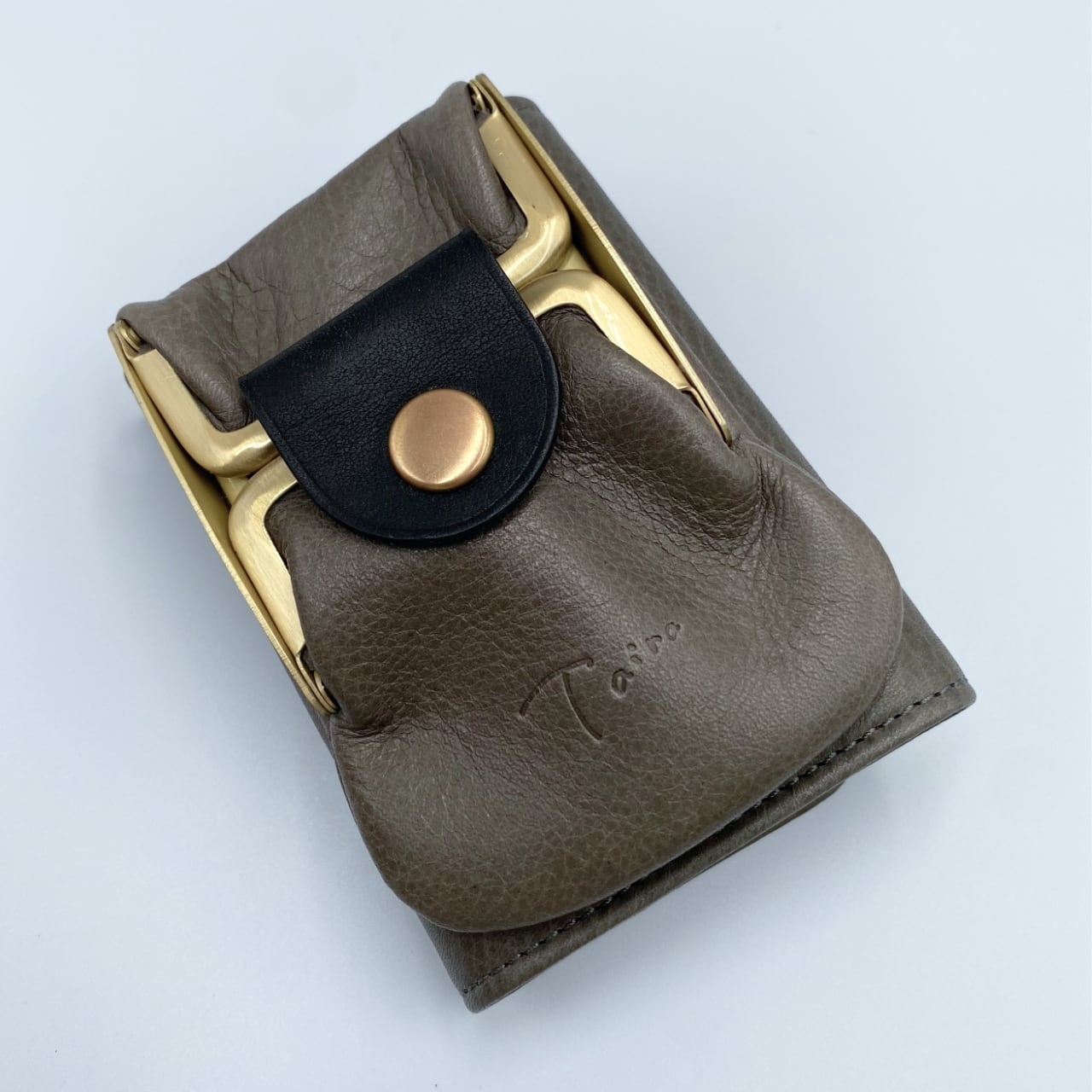 現在では作られていなかった観音開きの口金を復刻させたシンプルで機能的なガマグチ小銭入れに、三つ折り仕様のカード・お札入れを足したコンパクトウォレット。