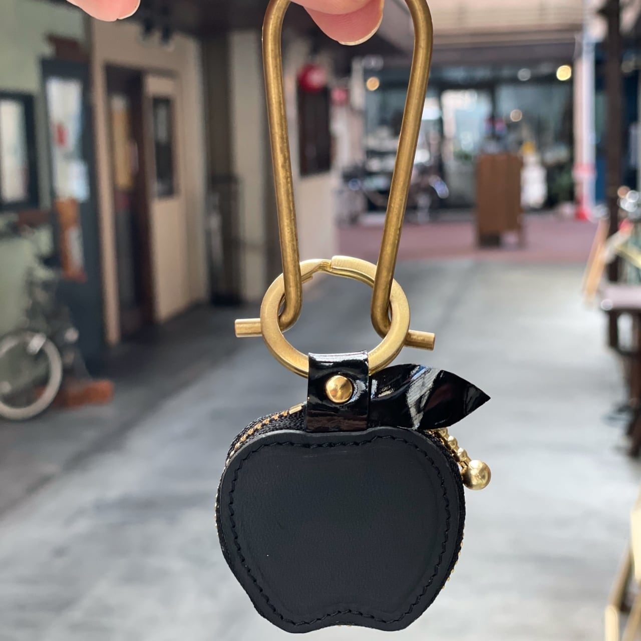 可愛らしいいちご、リンゴチャーム型の小物入れブラックが新登場です!