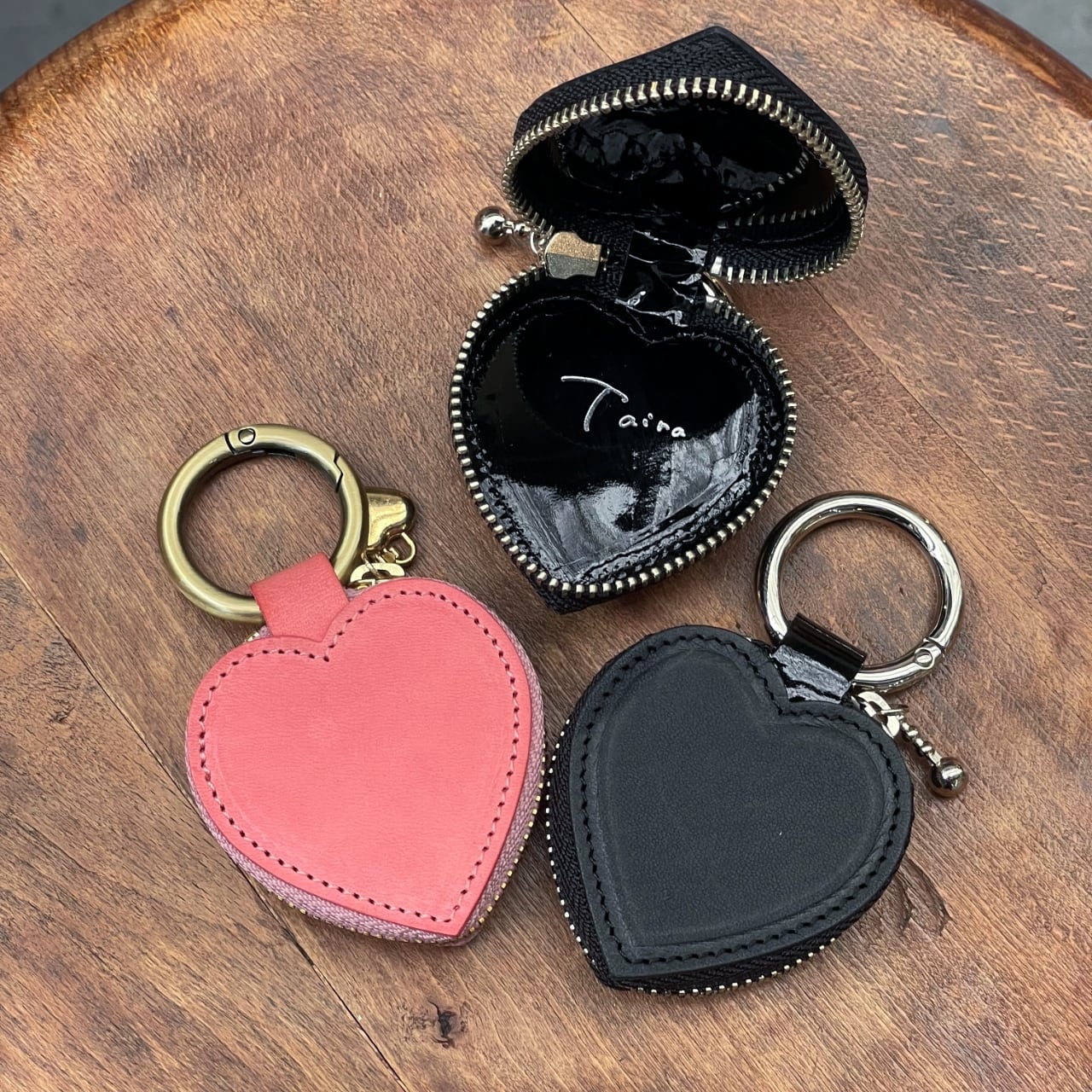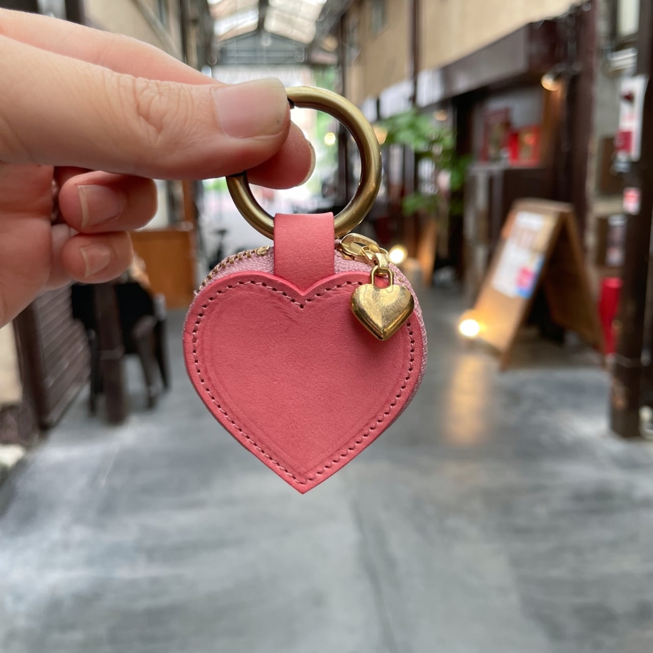 おしゃれなハート型のコインチャームが新登場!このハートコインチャームは、革小物としてだけでなく、ピルケースや小物入れとしてもご活用いただけます。バリエーション豊かな色合いから選べるので、お好みに合わせてお楽しみください。
