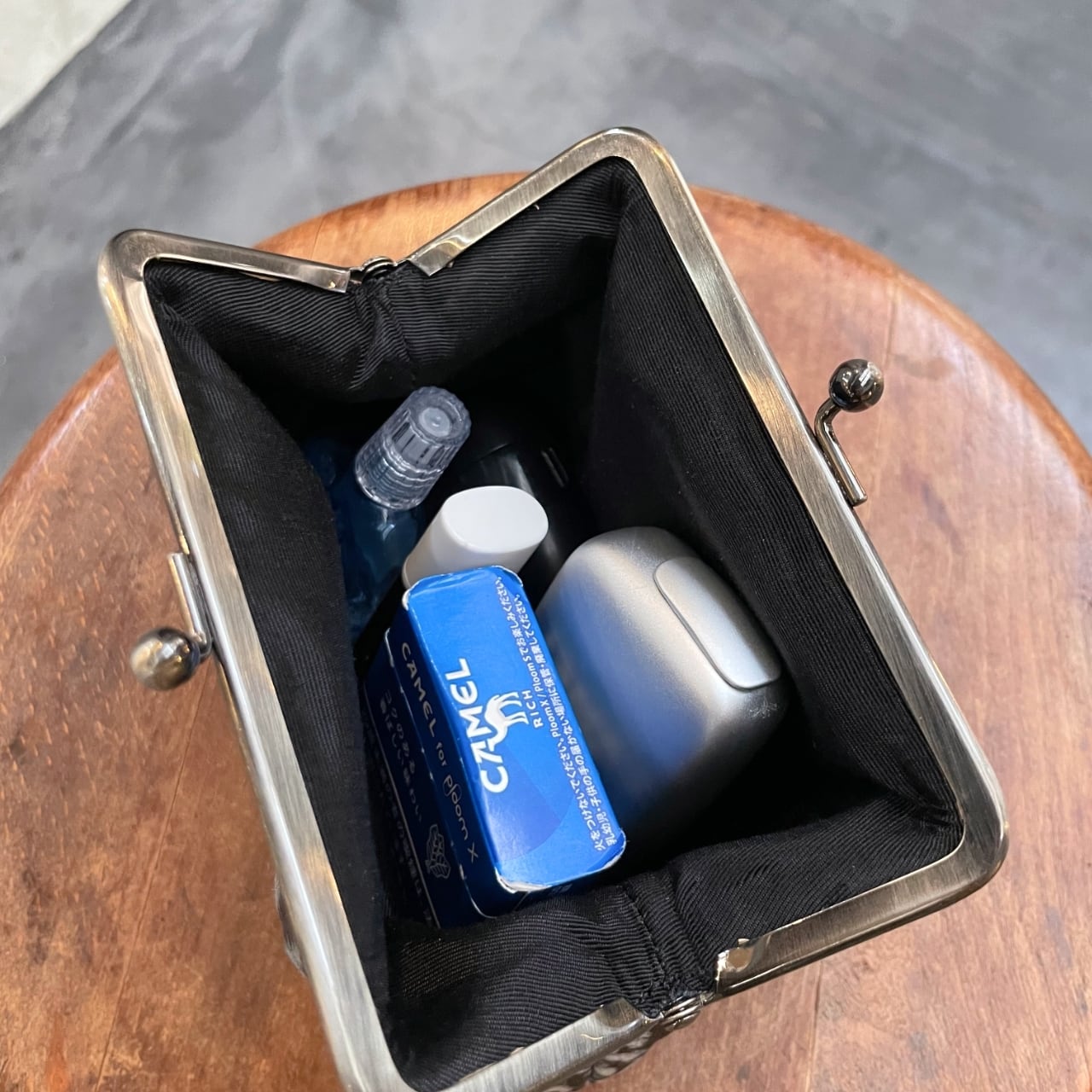 口金にはアンティーク磨き仕上げを採用し、落ち着いた上品な印象に。