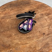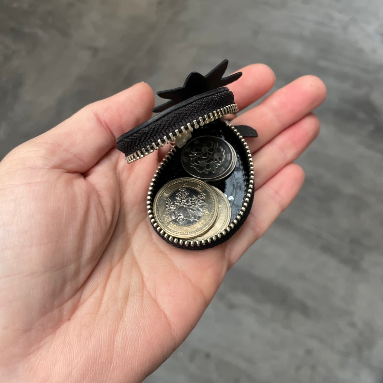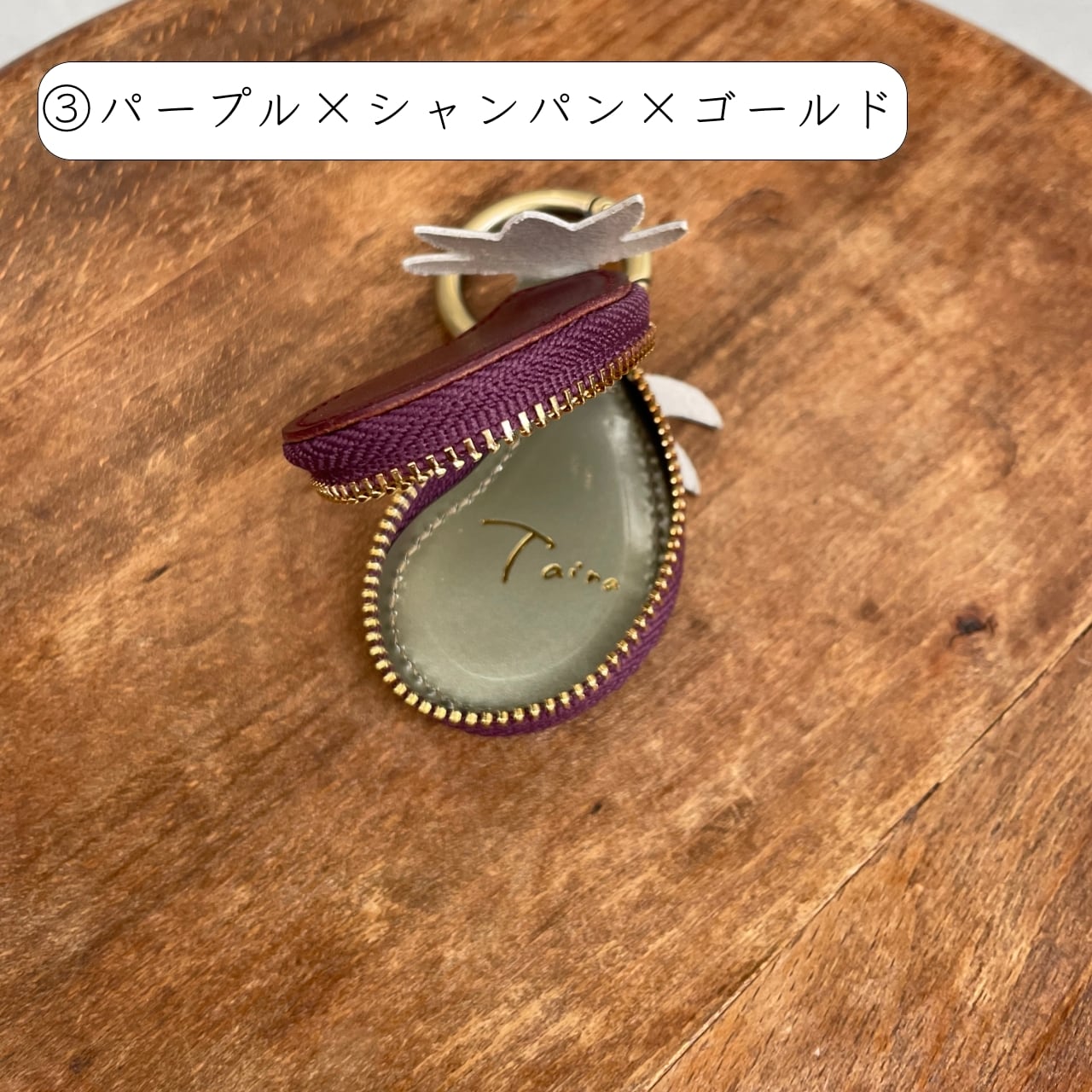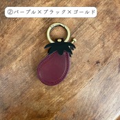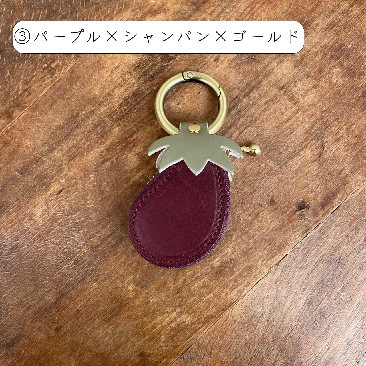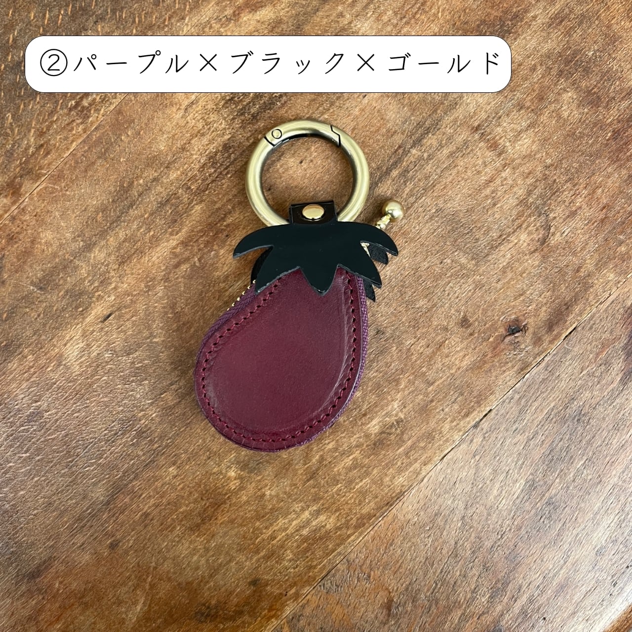 ユニークななすび型が特徴のレザーチャームケース!コインやくすり、小物入れとして大活躍します。イタリアンレザーとパテント革の巧妙な組み合わせが、上品さと遊び心を演出しています。
