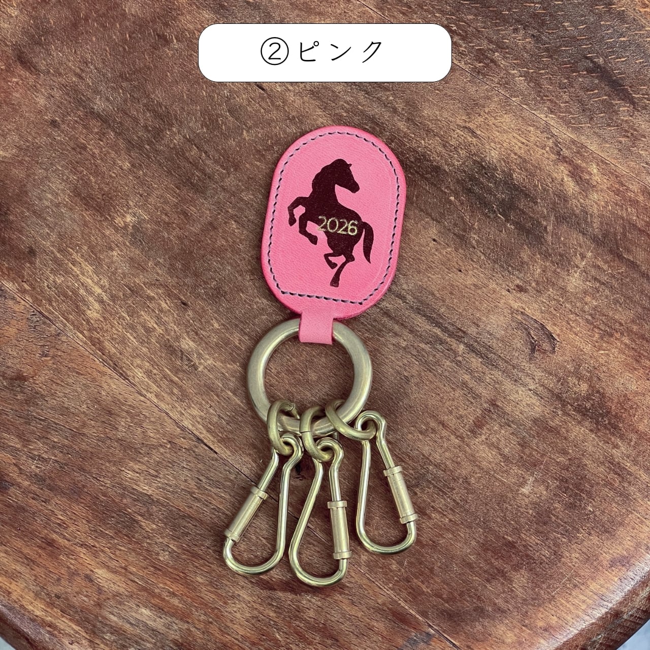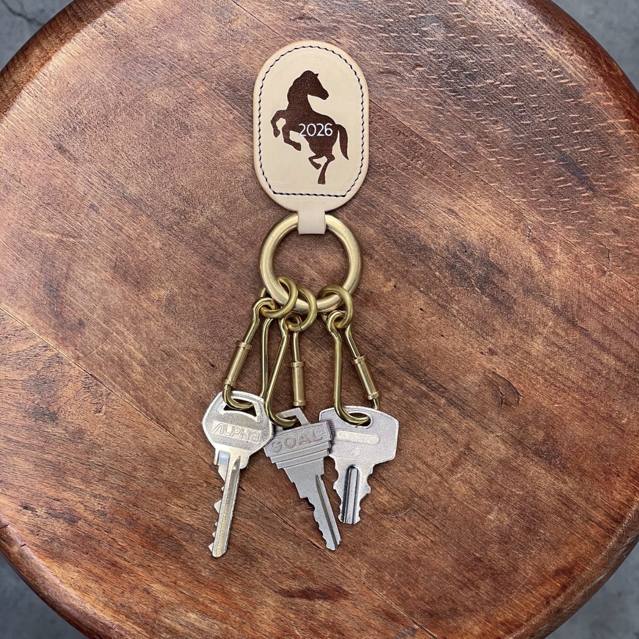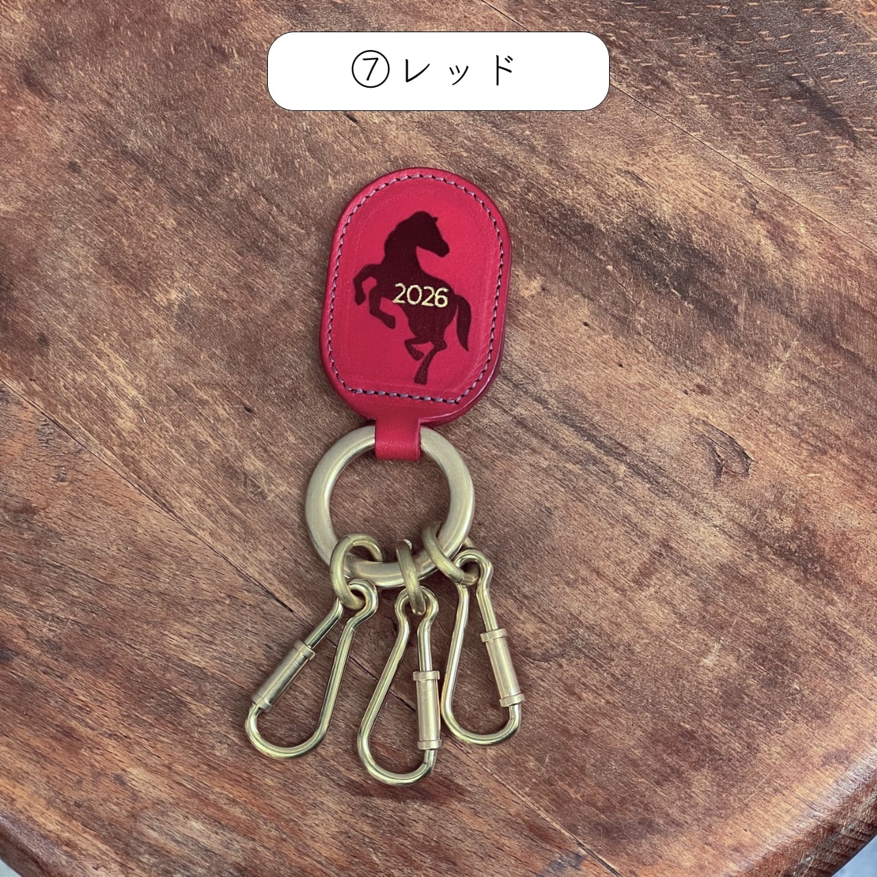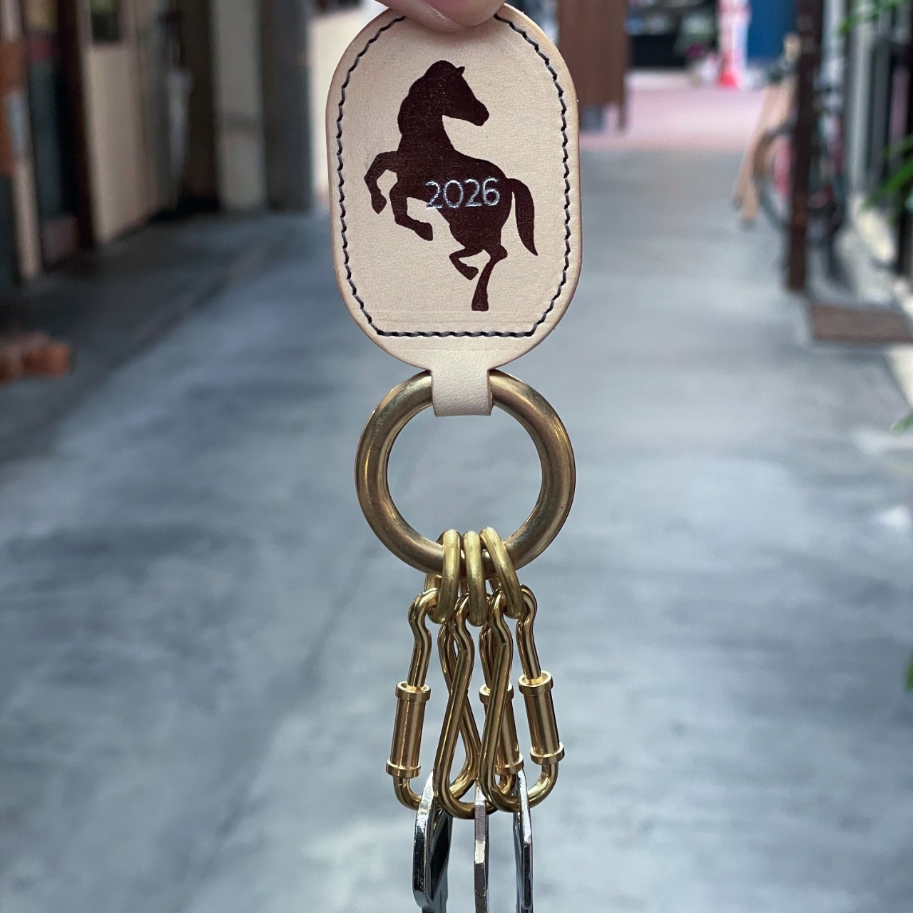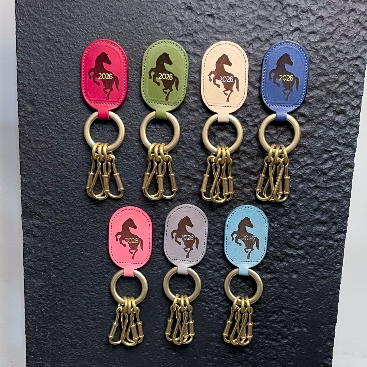 2026年の干支を祝う、馬が刻印されたマグネットキーホルダーです。玄関や冷蔵庫にピタッと貼り付けることができ、日常の便利アイテムとして活躍します。