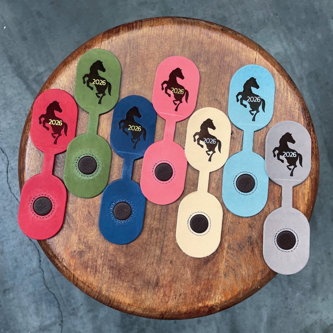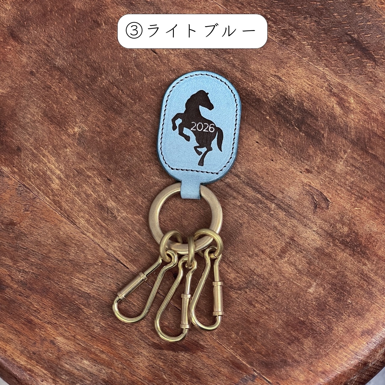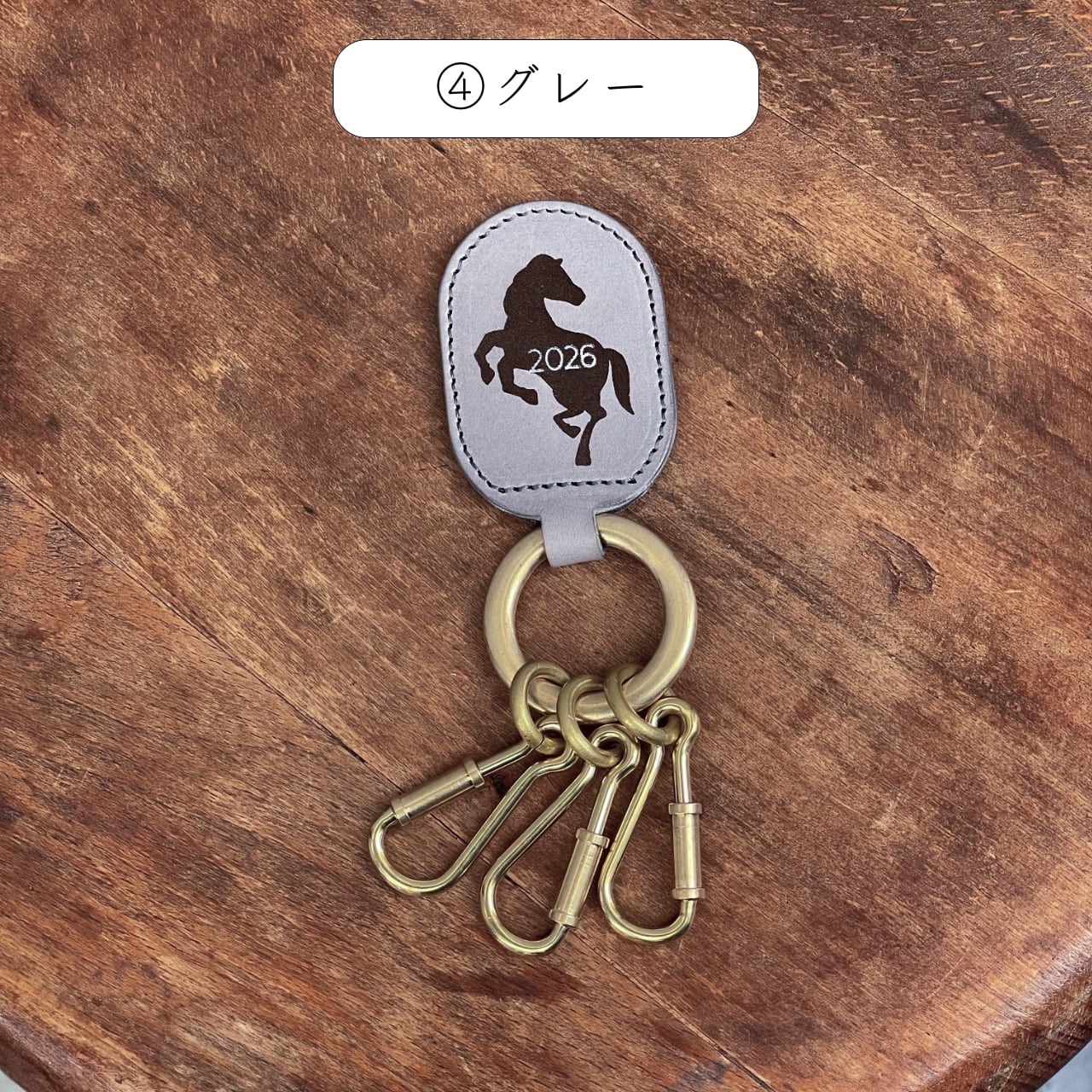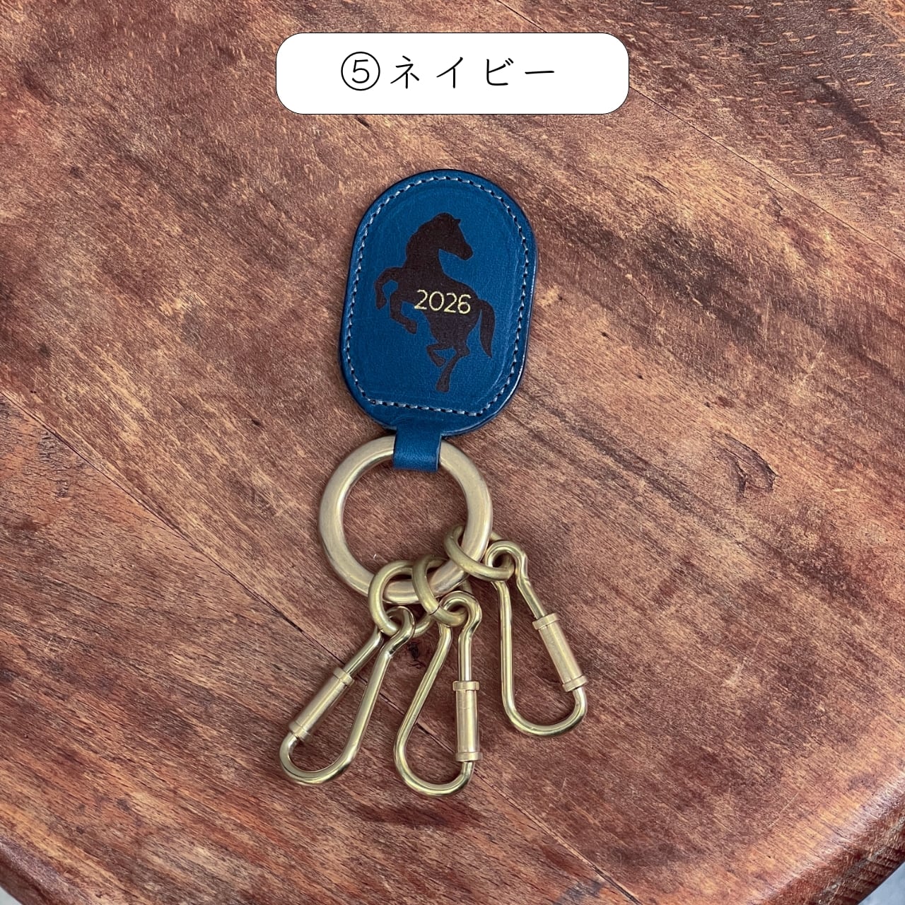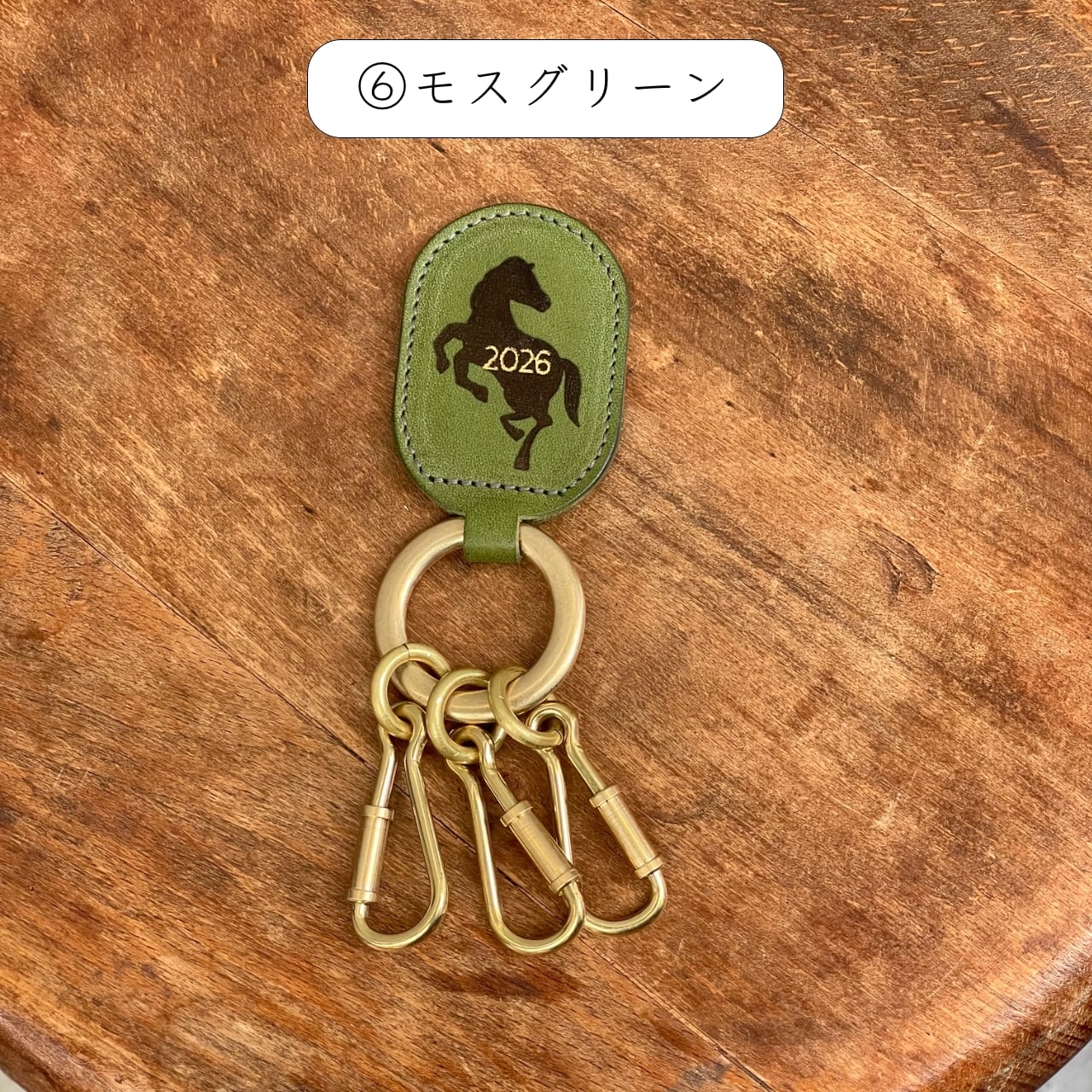 2026年の干支を祝う、馬が刻印されたマグネットキーホルダーです。玄関や冷蔵庫にピタッと貼り付けることができ、日常の便利アイテムとして活躍します。