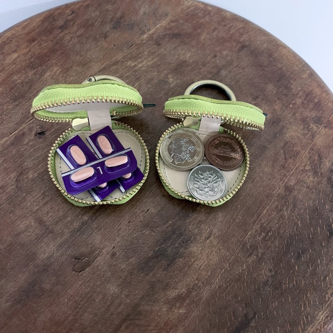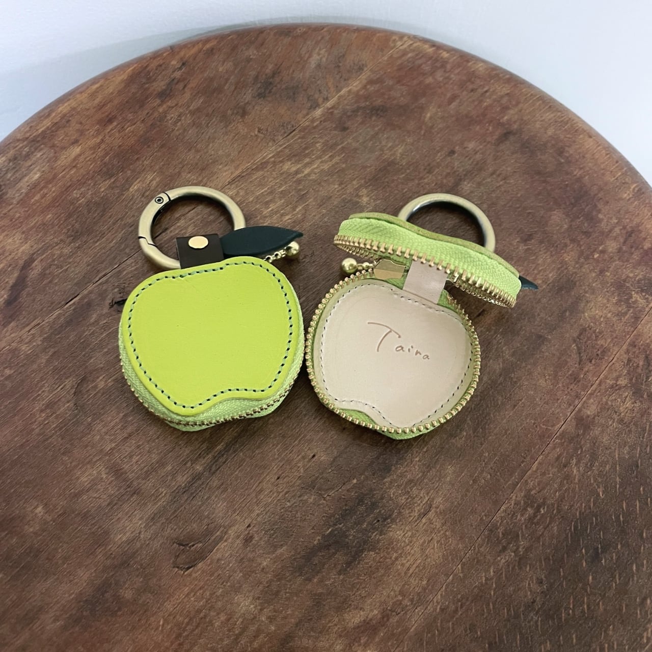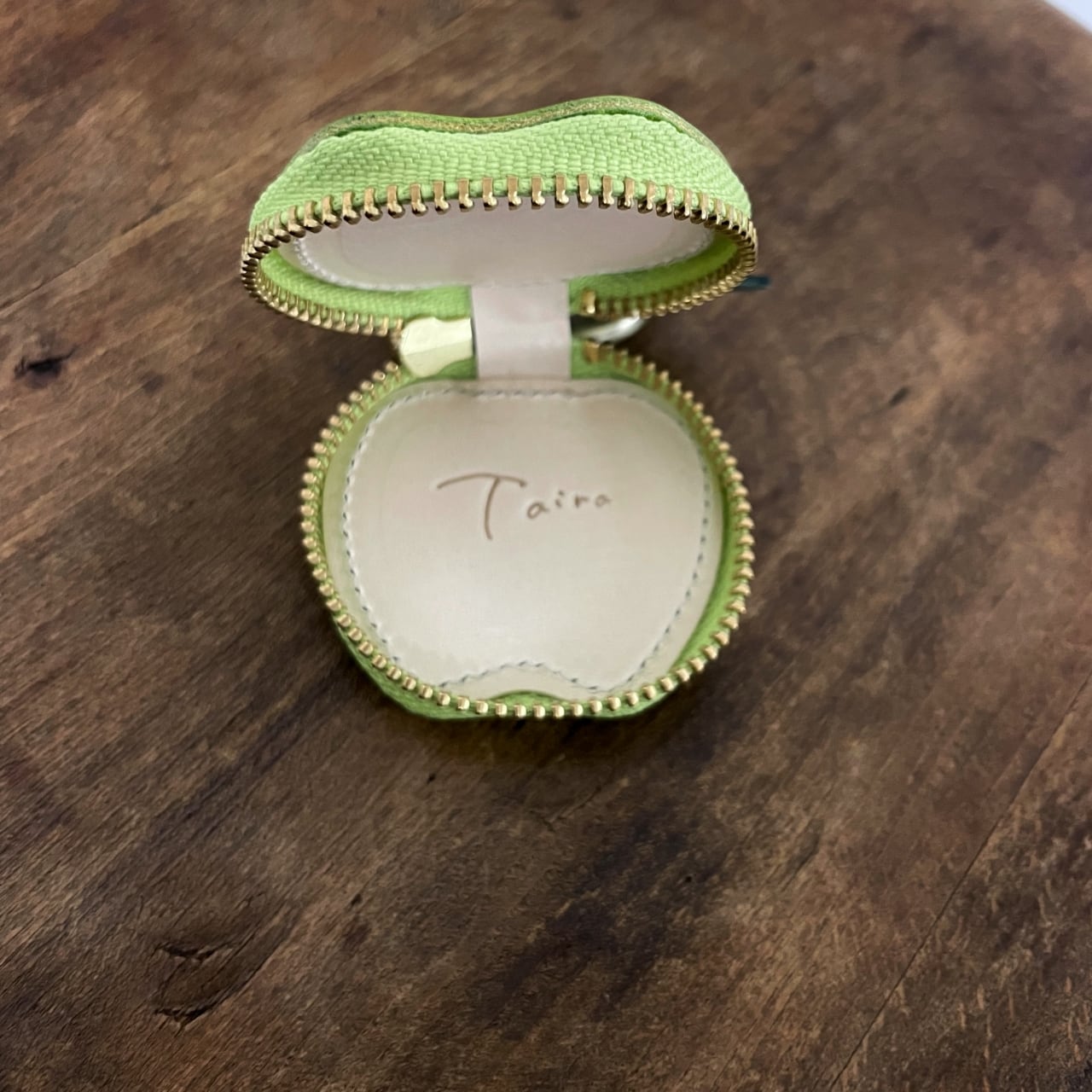 遊び心満載のりんご型小物入れ、グリーンアップルチャームケース!コインやくすり、小物入れとして日常生活で大変役立ちます。爽やかなグリーンアップルの色合いが、カバンに取り付けることで、楽しいアクセントに。
