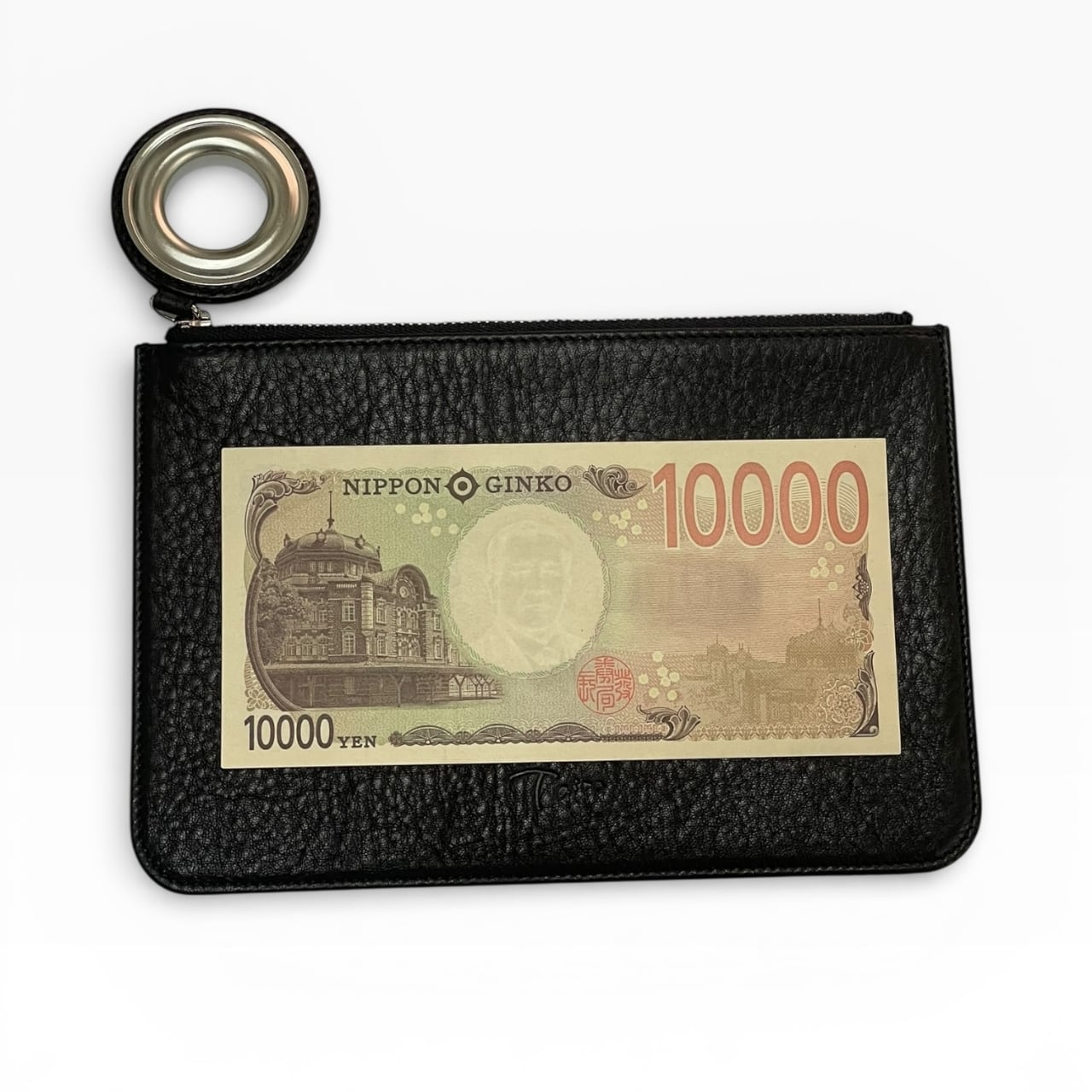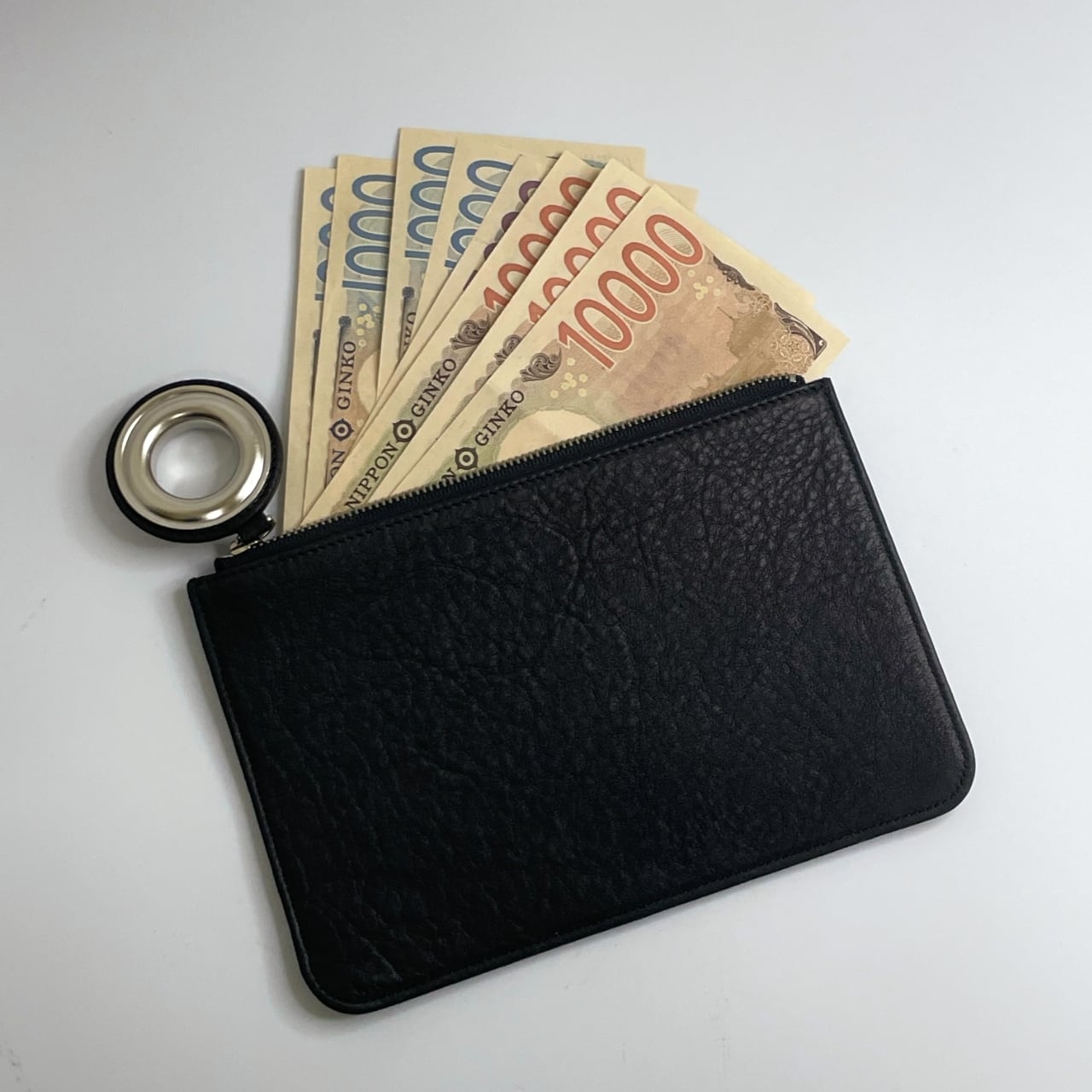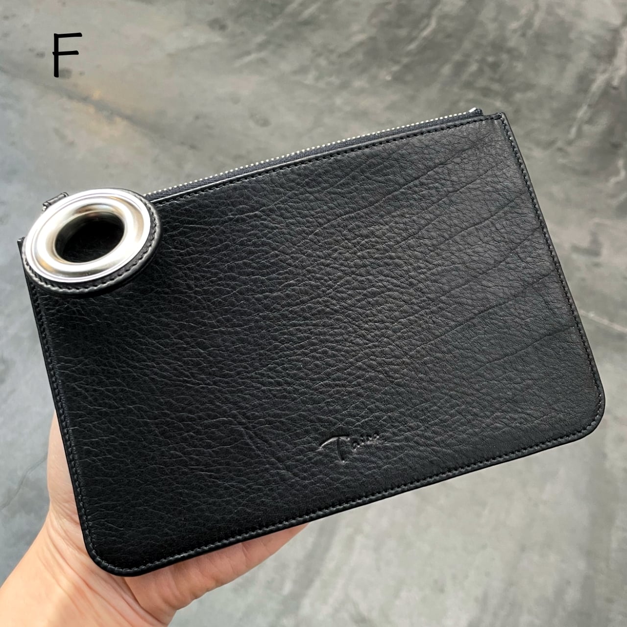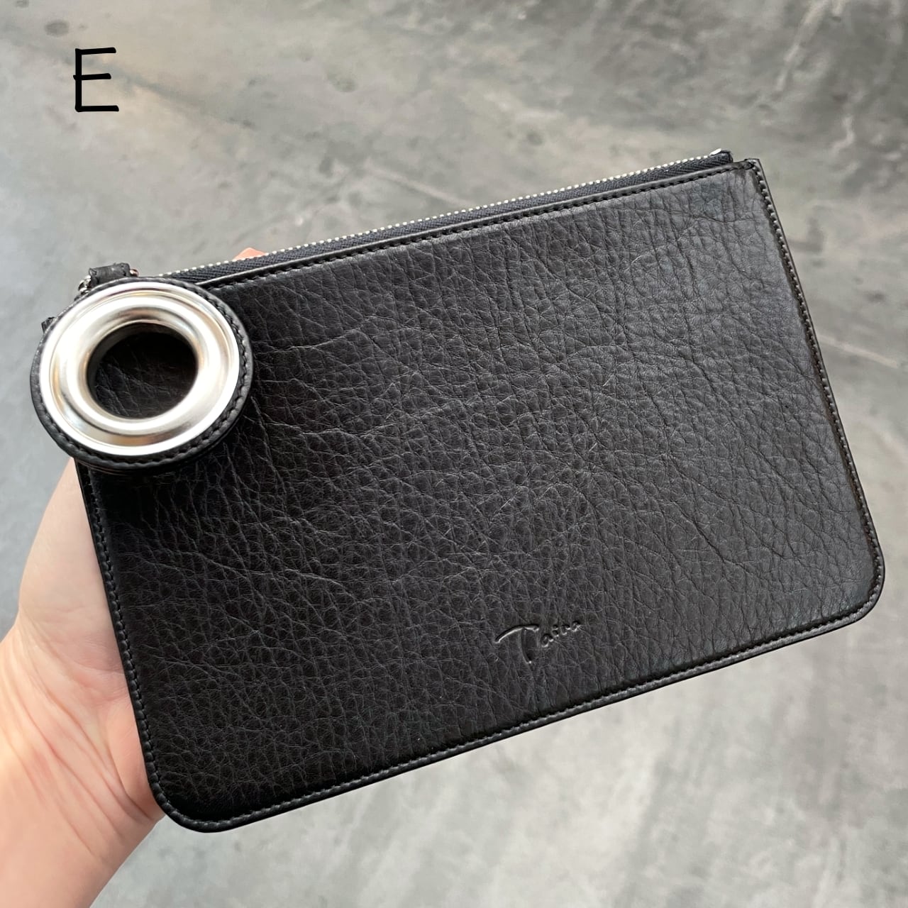革本来の表情を楽しめる、自然なシボ感が魅力のアイレットポーチ。