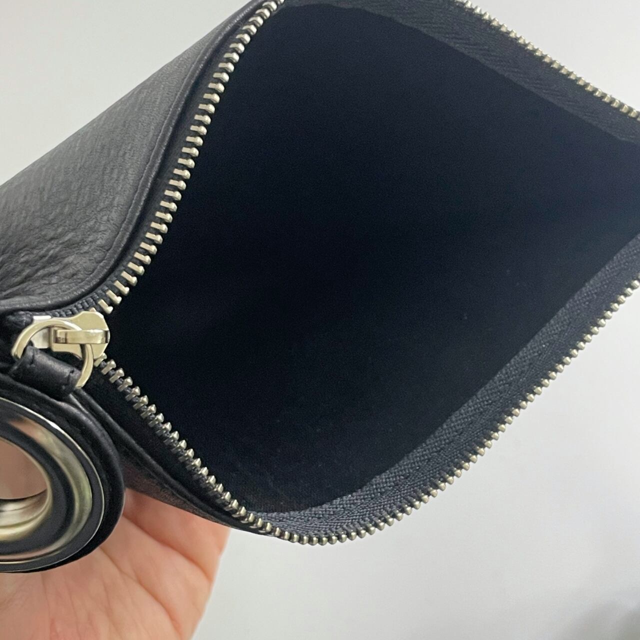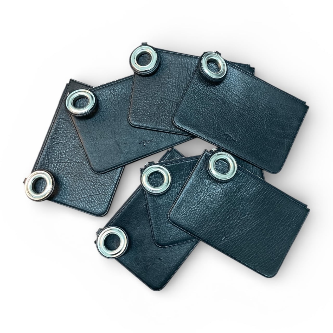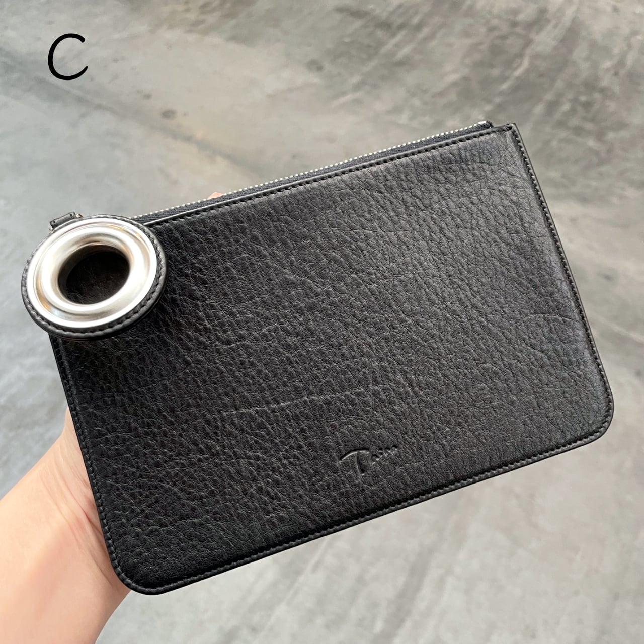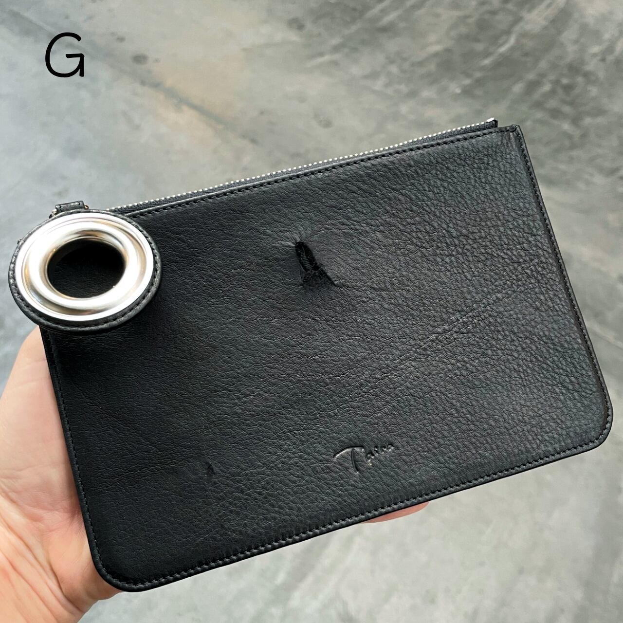 革本来の表情を楽しめる、自然なシボ感が魅力のアイレットポーチ。