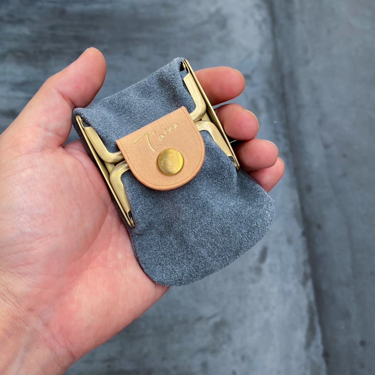 We have revived the classic double-flap coin purse design, creating a simple yet functional coin case with a touch of serenity. The soft blue-grey velour body provides a calming feel, while the natural hook adds a touch of warmth.